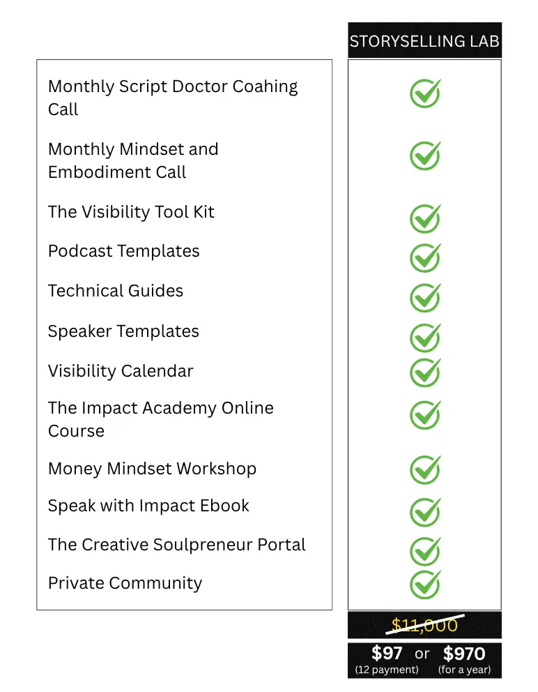 Or, you can embody and master storytelling and speaking and build a thriving business -when you invest in The StorySelling Lab